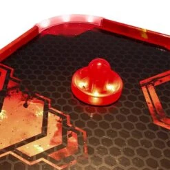 Con una superficie de juego de 4,5 pies (146 cm) es válida para niño de 8 años en adelante pero también para adultos de cualquier edad. Además, tanto el disco como los lanzadores vienen equipados con tecnología LED para que pueda jugarse espectacularmente en la oscuridad y podrás recargarlos por USB para tener siempre su brillo al máximo. Si logras marcar, las esquinas se iluminarán de tu color cuando el disco entre en la portería. También el marcador tiene pantalla LED iluminada para que no pierdas detalle durante los partidos.