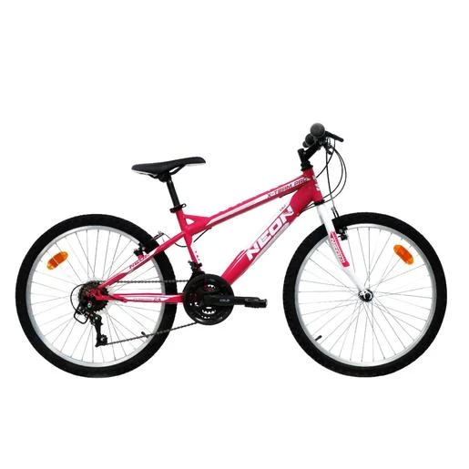 Avigo – Bicicleta Neón 24 Pulgadas Rosa, una bicicleta con cuadro de acero, ruedas de 24 pulgadas, llantas de aluminio, sillín Mountain Bike con cierre rápido, frenos V-Brake, 18 velocidades y cambios con puños rotativos revo. Una bicicleta Avigo de 24 pulgadas que solo se puede encontrar en Toys R Us.