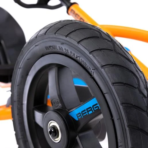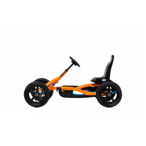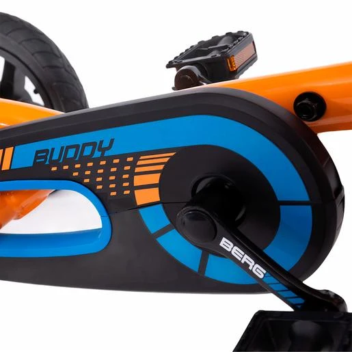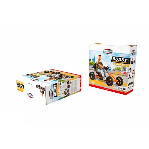 Triciclo Kart 4 ruedas Buddy B-Orange, impresionante triciclo deportivo estilo kart ideal para que tu peque lo disfrute con toda la garantía del sistema de seguridad BFR. Tiene el asiento ajustable en distintas posiciones. Sus 4 ruedas y su eje articulado permiten que este cuadriciclo ofrezca una conducción muy estable. Además, sus neumáticos súper fuertes son perfectos para circular también por asfalto. De peso ligero, se puede guardar perfectamente en posición vertical.
