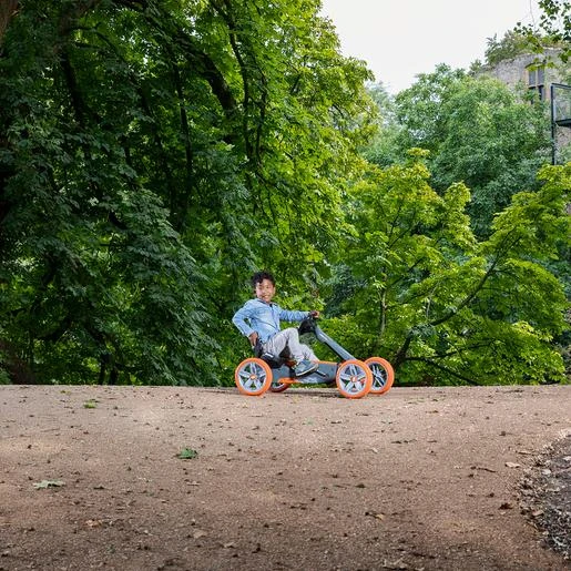 Triciclo Kart 4 ruedas Reppy Racer, impresionante triciclo deportivo estilo kart que hará las delicias de tu peque. Tiene un asiento ajustable en 4 posiciones y sus ruedas EVA son super silenciosas tanto para interior para exterior. Además, son de piñón fijo y su eje es oscilante. El volante deportivo tiene diferentes sonidos. Las 4 ruedas hacen que este cuadriciclo sea de los más estables.