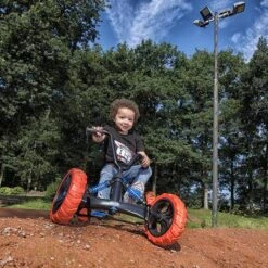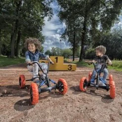 Tiene el volante ajustable, igual que el asiento, que se puede ajustar a la altura del conductor con 3 posiciones. Sus ruedas son de piñón fijo, por lo que avanza hacia delante y hacia atrás. Incluye muelles de suspensión en las ruedas delanteras.