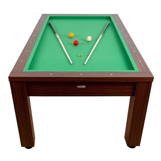 Mesa de billar de fácil montaje. La mesa viene montada a falta de atornillar las patas. La mesa está forrada con tapete de gran duración en color verde. Incorpora niveladores de patas.