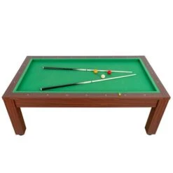 Este modelo es un billar francés de carambola de gran tamaño con acabados en un color madera muy natural, ideal para colocarlo en espacios con decoración rustica o de estilo antiguo. El billar Carambola está fabricado en madera MDF y está forrado con un tapete de color verde de gran calidad y duración.