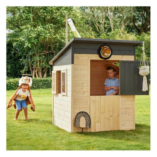 ¡Moderna con su techo plano, la cabaña infantil Santa Monica se convertirá rápidamente en el lugar favorito de juegos de sus hijos! Dotada de una puerta de granja y una doble ventana, será su sitio secreto de observación y su refugio lejos de las miradas de los adultos.