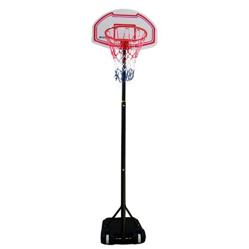 Las medidas del aro son 38 cm y las del tablero son: 71 X 45 cm. La base se puese rellenar con agua o con arena para completar en contrapeso estable, y mide 75 X 45 X 13 cm. Está equipado con dos ruedas para un movimiento sin esfuerzo incluso cuando la base se carga con relleno.