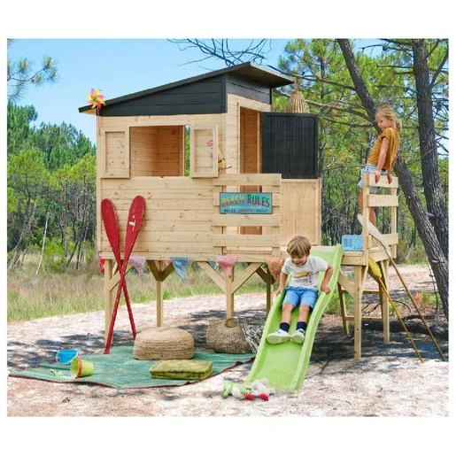 Casa infantil elevada de madera con tobogán Portland, un casa de madera muy divertida.