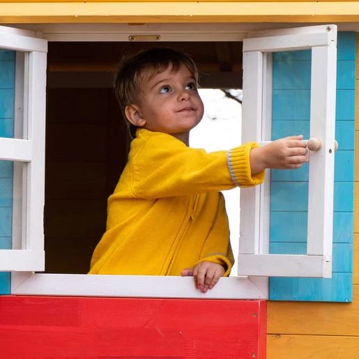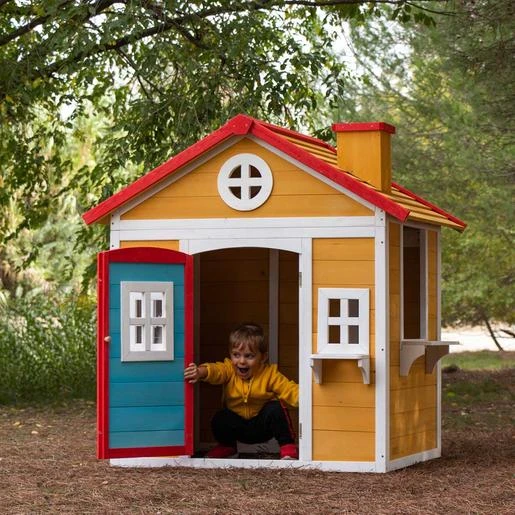 Casita madera Visby. La casita Visby es una preciosa casita con unos colores que a los niños les encantará. Son colores muy cálidos y agradables que harán de esta casita un lugar del que no salir.