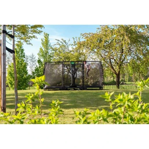 Exit – Cama elástica de suelo Allure Classic 244 x 427 cm verde, un trampolín para ser semienterrado con borde protector acolchado y red de seguridad.