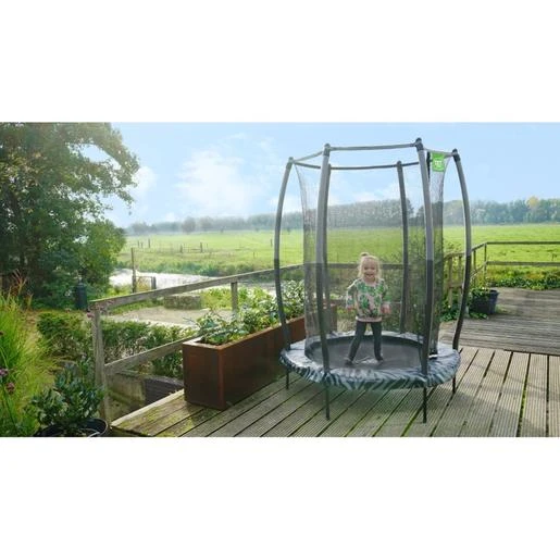 Este trampolín redondo y compacto con red de seguridad tiene un escalón bajo, para que incluso los niños más pequeños puedan subir fácilmente al trampolín.