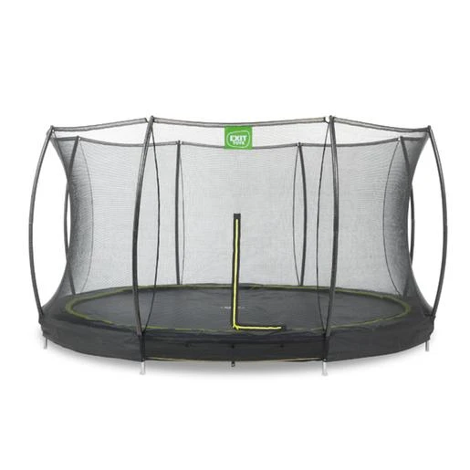 El trampolín Exit Silhouette en el suelo con red de seguridad es un trampolín redondo de buena calidad.