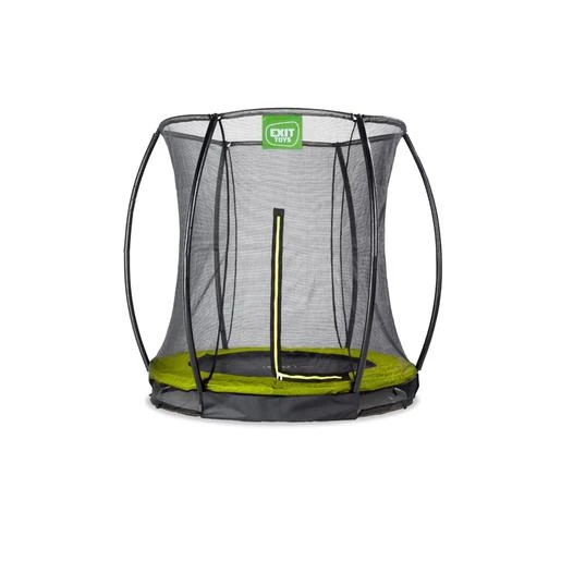 El trampolín Exit Silhouette en el suelo con red de seguridad es un trampolín redondo de buena calidad.