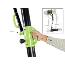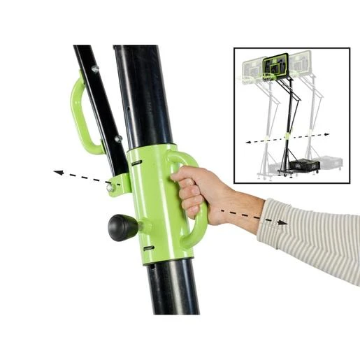 La canasta de baloncesto portátil Galaxy tiene un sistema único sobre tres ruedas resistentes y un contrapeso. Esto te permite mover fácilmente la canasta sin inclinar la estructura. La rueda giratoria en la parte delantera te permite dirigir el tablero en cualquier dirección. Incluso los niños pueden mover el tablero de baloncesto.