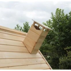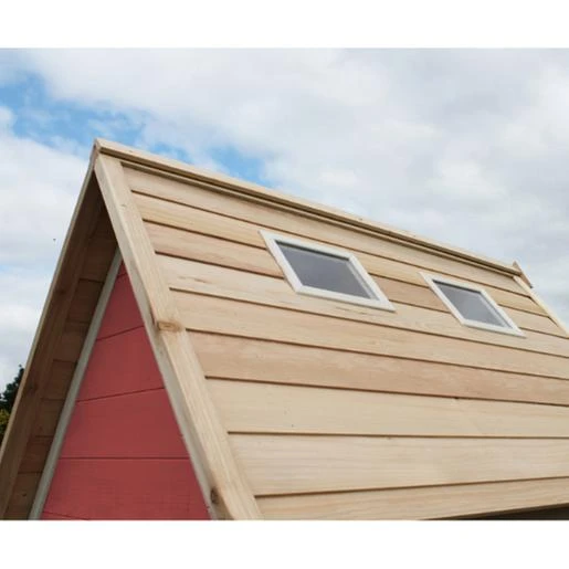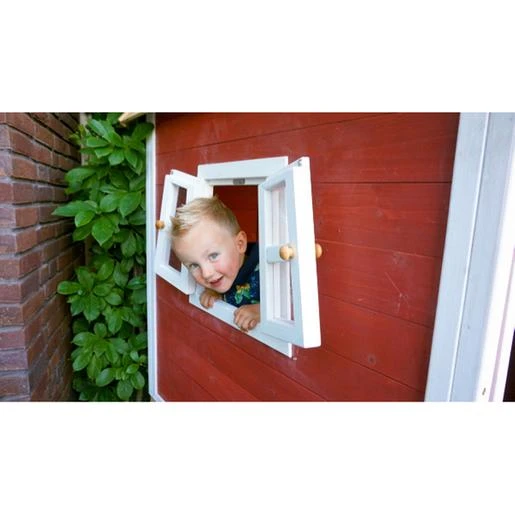 Las casitas de juegos de EXIT Toys están hechas de madera de cedro certificada FSC (FSC 100%, FSC® SCS-COC-007799®). Este tipo de madera no se astilla y es naturalmente resistente a las influencias climáticas como la lluvia y, por lo tanto, resistente a la podredumbre de la madera. No es necesario tratar las casitas de madera EXIT antes de usarlas, los niños pueden jugar de forma segura con ellas desde el principio.