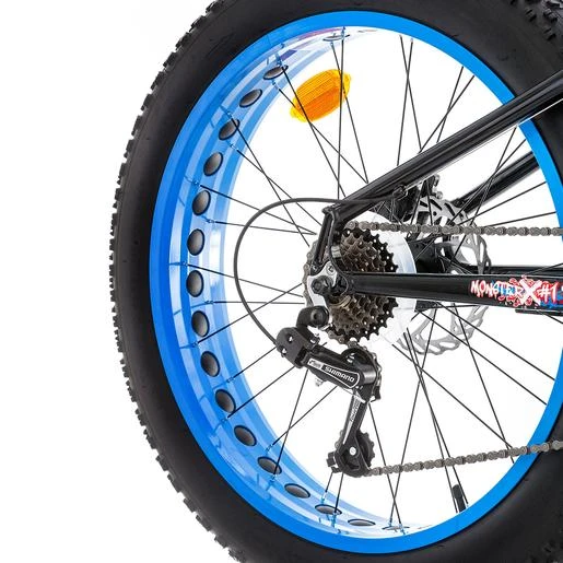 Gracias a la robustez de los neumáticos extra grandes, la Fat Bike Monster x Rider de 24″ te permitirá viajar todo por tipo de terrenos en busca de emociones. Hará las delicias de niños y adolescentes, ya que es una bicicleta robusta y sólida, perfecta para su uso regular. Además, podrás ajustar fácilmente las velocidades gracias a su agarre giratorio.