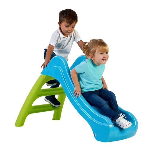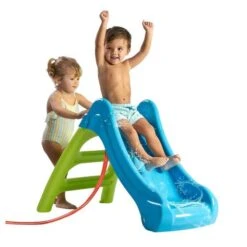 ¡Con este mini tobogán azul y verde de plástico tu pequeño tendrá muchos ratos de diversión!