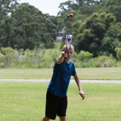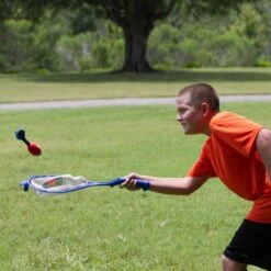 Un juego que permite lanzar el proyectil que volará a distancias enormes y atraparlo en la red de la raqueta. Se logra lanzar el proyectil mucho más allá que si se lanza una pelota simplemente con la mano.