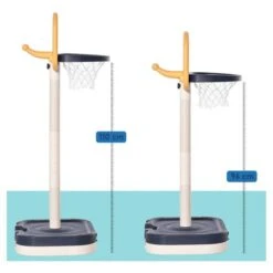 Incluye 1 balón, 1 inflador y 5 anillas y la altura del aro se puede ajustar de 96 a 110 cm, adaptándose al tamaño y crecimiento de los niños. Su diseño portátil hace que sea fácil de transportar.