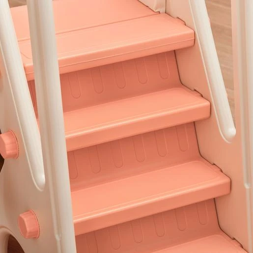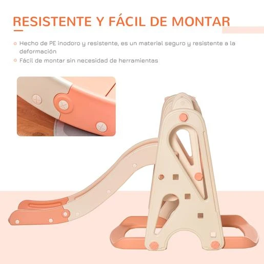 - 3 en 1, compuesto por tobogán, columpio con asiento ancho y aro de baloncesto.