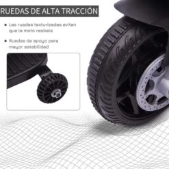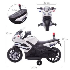 Homcom – Moto eléctrica batería diseño Policía con ruedas de equilibrio. ¡Qué empiece la aventura! Esta motocicleta eléctrica de Homcom será la compañera de aventuras perfecta para cualquier niño. Con una autonomía de hasta 45 minutos después de una carga completa, podrá ir por sus lugares favoritos como un verdadero policía. Con faros delanteros con luz y bocina, esta moto ofrece una experiencia de conducción de lo más realista, para que los niños se lo pasen en grande.