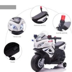 Esta moto eléctrica infantil permite que los niños se lo pasen en grande mientras promueven habilidades como la coordinación, la orientación y su autoconfianza a una edad temprana. Les encantará sentirse como auténticos conductores como los policías. Cuenta con un asiento ancho para que se sienten cómodamente, 2 neumáticos grandes, 2 ruedas pequeñas adicionales para mantener el equilibrio y 1 manillar con mangos antideslizantes para mayor seguridad.