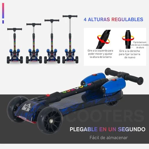 Homcom – Patinete scooter Azul con efectos de luz y sonido. Si buscas un patinete funcional y a la vez moderno, este scooter es sin duda el producto que estás buscando.