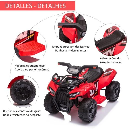 Homcom – Quad eléctrico con faros LED rojo, un divertido quad eléctrico para disfrutar del aire libre.