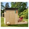 Esta casita cuenta con un bonito exterior a imitación de las típicas casitas de campo, en colores rosa y lila.