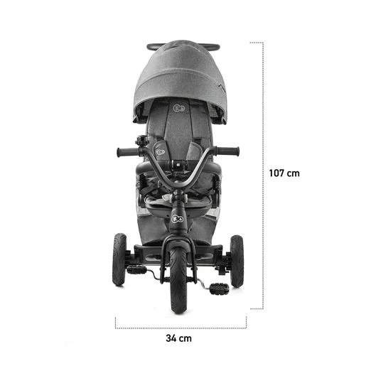 - Dimensiones: Altura (mango para padres) 102 cm. Altura (triciclo con capota) 130 cm. Ancho (rueda delantera) 34 cm. Altura (rueda delantera) 25 cm. Altura (rueda trasera) 22 cm.