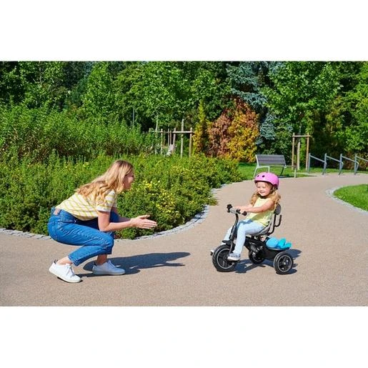 Triciclo Freeway Green. El triciclo Freeway es una alternativa perfecta para la silla de paseo. El asiento giratorio 360° permite que el niño vaya mirando hacia atrás o hacia delante. Es una excelente solución para los niños que aún no están listos para perder a los padres de vista durante el paseo. El asiento del Freeway se puede instalar en dos posiciones diferentes respecto a la barrera y al respaldo: gracias a esto, podrás ajustar perfectamente el triciclo a la altura del niño. ¡Los paseos en el triciclo Freeway los disfrutarán los niños de 9 meses a, incluso, 5 años!