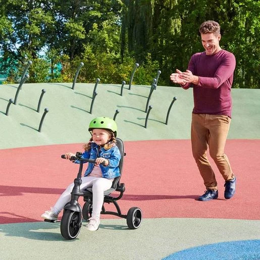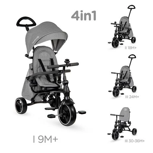 Triciclo Jazz. Jazz es un modelo de triciclo 4 en 1. Gracias a las soluciones utilizadas, combina hasta 4 productos en uno solo, lo que permite ajustarlo fácilmente a la edad y las habilidades motoras del niño. El triciclo puede plegarse a un tamaño compacto sin necesidad de desmontar sus elementos, puedes colocarlo fácilmente en el maletero o en un armario de tu casa.