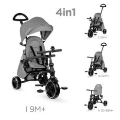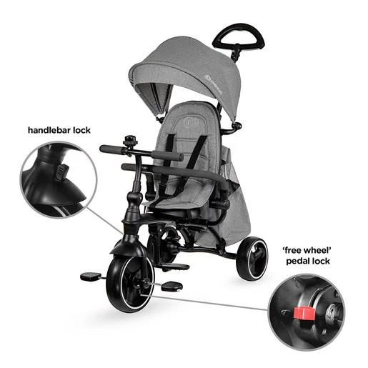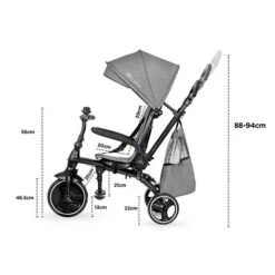- El triciclo puede realizar hasta 4 funciones, ¡en el caso de triciclo Jazz puedes ajustarlo a la edad, altura y habilidades del niño! Al desmontar elementos individuales, como la barandilla, el asa de los padres y los cinturones, puedes ajustar la bicicleta a la edad, altura y habilidades, hasta que el niño sepa montar el triciclo de forma independiente.
