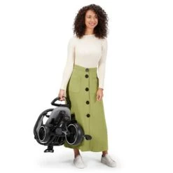 - Diseño compacto. Puedes montar el triciclo Jazz sin necesidad de desmontar sus elementos individuales. Una vez plegado, se mantiene en posición vertical, lo que facilita su almacenamiento. El triciclo puede agarrarse por el asa y llevarse como una maleta (por ejemplo, cuando hay que entrar en una tienda).