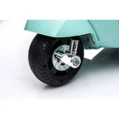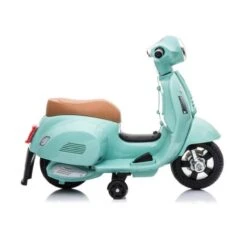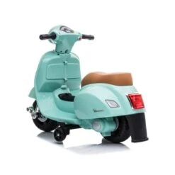 Mini Vespa verde oliva 6V, una mini moto eléctrica con licencia Vespa.