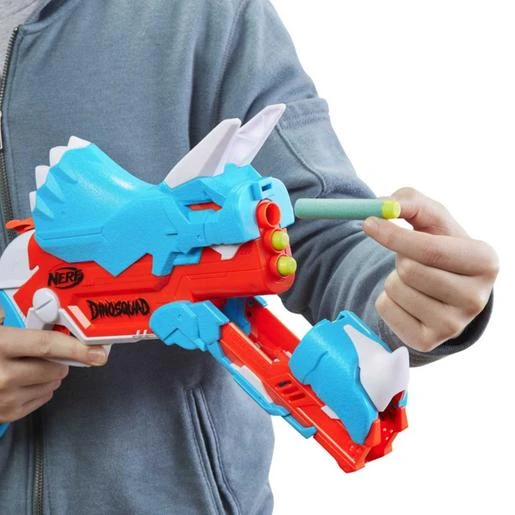 Nerf – Dinosquad Tricera-blast, un bl谩ster con detalles incre铆bles inspirado en un triceratops.