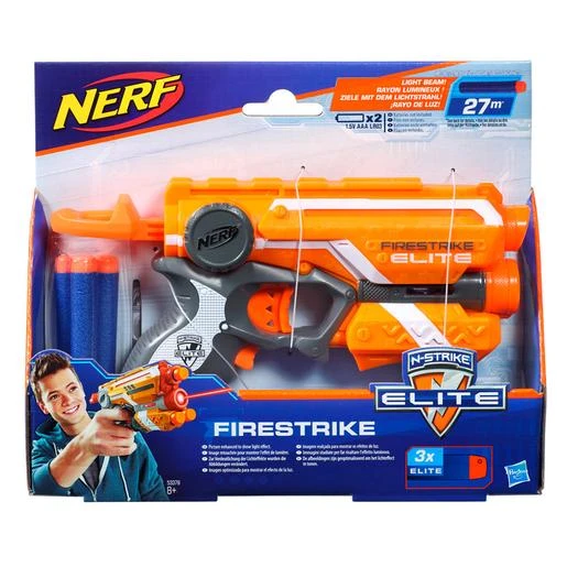 Nerf – Elite Firestrike DYD-12 (varios colores), un lanzador Nerf de la serie Elite para aventuras llenas de emoci贸n. Un lanzador compacto con rayo de luz roja para apuntar al objetivo. Incluye 1 lanzador, 3 dardos. 隆Alcanzan m谩s de 20 metros! Son necesarias 2 pilas AAA. Pilas NO incluidas. Edad recomendada: +8 a帽os.