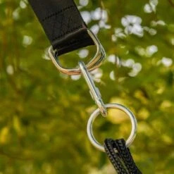 Proporciona un apoyo fuerte lo suficientemente resistente para colgar en una rama de árbol o un soporte de columpio y soportar hasta 150 kg.