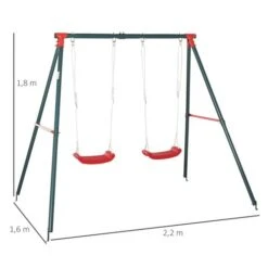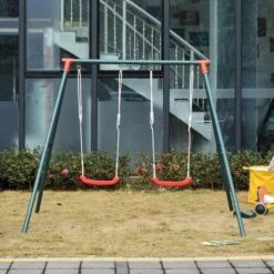 Outsunny – Columpio metálico doble. No hay nada mejor que disfrutar al aire libre con tus hijos. Fomenta su desarrollo mientras se divierten con este columpio infantil doble de Outsunny. Con una estructura resistente de metal lacado con pintura con revestimiento en polvo y con una parte que se entierra en el suelo para garantizar mayor estabilidad y resistencia con el movimiento de balanceo de los dos columpios. Para que los niños se diviertan jugando en el jardín, terraza, o cualquier espacio exterior.