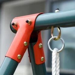 - Columpio con estructura de metal con superficie lacado con pintura con revestimiento en polvo, para mayor resistencia a la intemperie y a la corrosión.