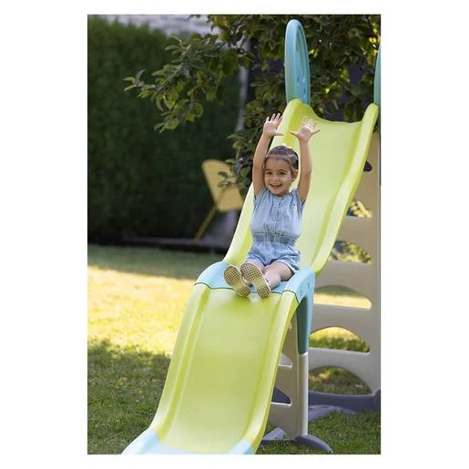 Cuando el niño es pequeño puede utilizarse el tobogán sencillo (1,70 m de rampa), con posibilidad de convertirlo en un super tobogán de triple onda para niños más mayores (3,60 m de longitud de rampa).