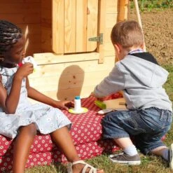 Se trata de casitas de jardín hechas de madera secada con montaje sencillo en ensamblado. Tienen cientos de posibilidades de juego y opciones para crear mundos nuevos al aire libre. Son ideales para una casa con jardín, y para peques de 3 a 12 años.