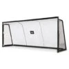 Esta canasta de baloncesto tiene una estructura de metal y una red resistente al desgarro.