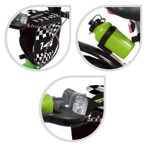 Sun & Sport – Bicicleta 14» verde, una bicicleta para niños perfecta para salidas deportivas en familia.