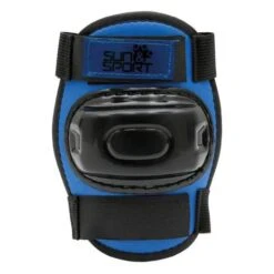 Las rodilleras, coderas y muñequeras de Sun & Sport son de color negro y azul. Este set de protección es perfecto para los niños que se inician en los distintos deportes de tabla.