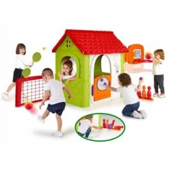 Su arenero con forma de barca permitirá a los niños construir castillos de arena. Una casita de madera que permite jugar a varias personas.