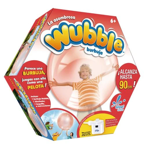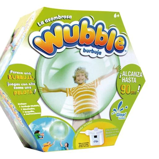 Burbuja Wubble + Hinchador contiene burbuja hinchable que alcanza hasta 90 cm, 1 cargador, 1 boquilla e instrucciones. ¡Juega con ella como una pelota! Disponible en rojo, verde o en azul. Edad recomendada + 6 años.